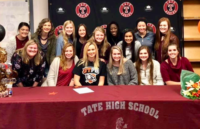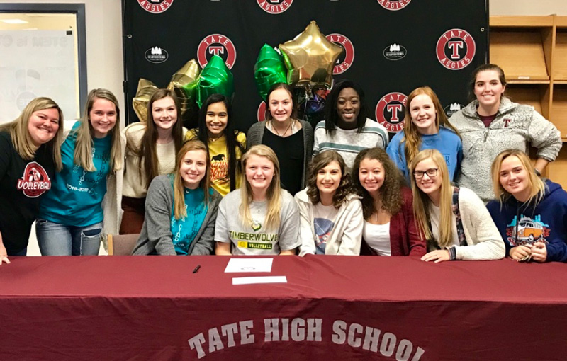 A milestone was reached Tuesday by the Tate High School volleyball program as the sixth and final senior signed to play at the collegiate level.