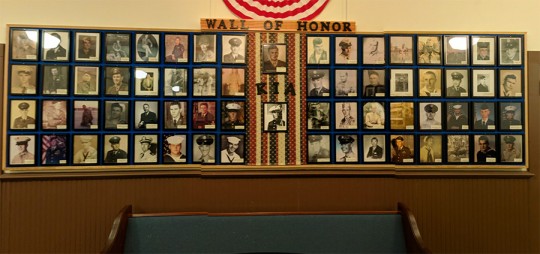 The Wall of Honor inside the Molino Community Center honors dozens of area residents = that have served in the military, including those killed in action (pictured above).