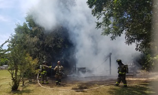 Firefighters responded to the a home at 9 1/2 Mile Road and Bowman Avenue about 1:20 p.m. to find flames and smoke showing from a wood frame shed that had already burned mostly to the ground.