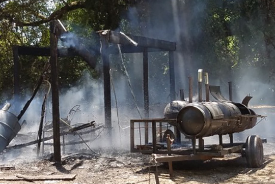 An investigation by Escambia Fire Rescue determined the smoker grill had been placed to close to the 300 square foot structure, sparking the blaze.