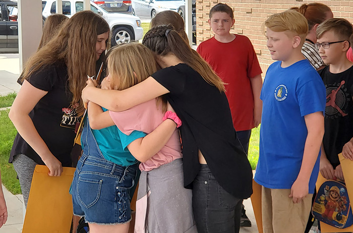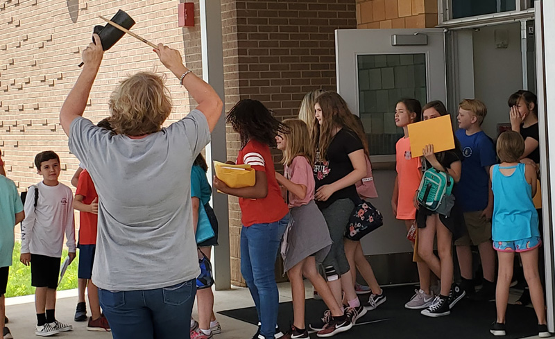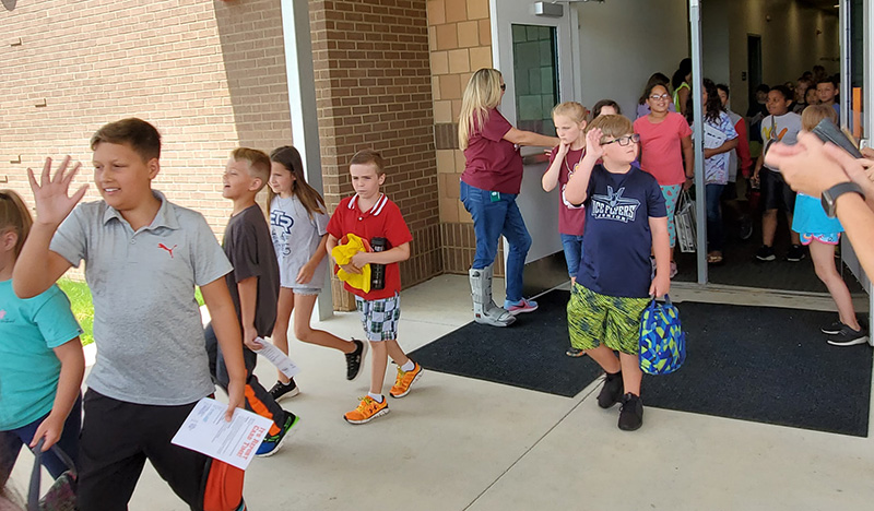 This was the first school year for the new Kingsfield Elementary and Beulah Middle schools. Kingsfield students (pictured) were sent off with a little fanfare including hugs, waves, singing and dancing.