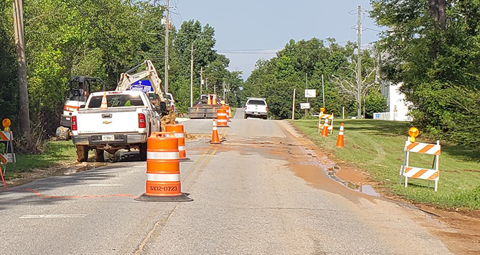 Pictured: Water main repairs Thursday afternoon on Williams Ditch Road near the Baptist and United Methodist churches. NorthEscambia.com photo by Kristi Barbour, click to enlarge.
