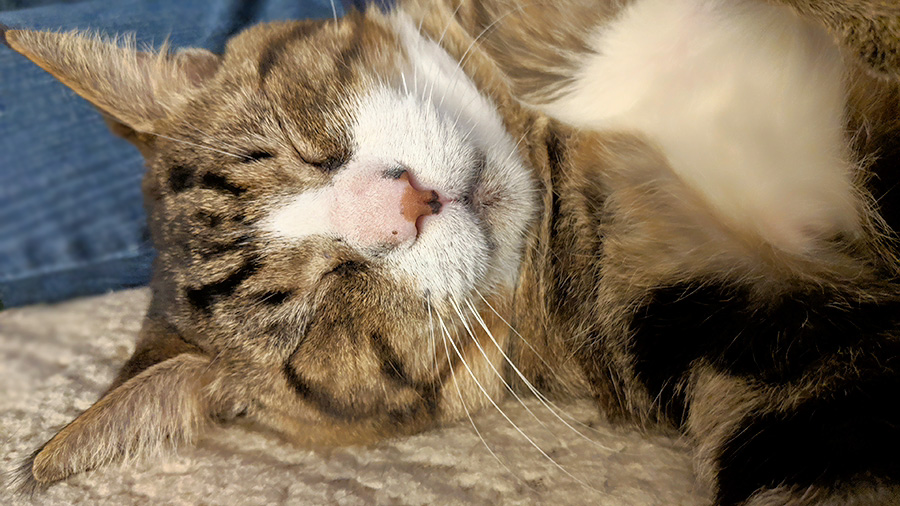 Great story, I lost my cat Stella last year. She was 19 and had that same condition. She would want to sit in my lap and then bite me when she got tired on the petting. She didn’t get to sit in my lap much, Ha! She would also slap my 70 lb. bulldog every time he got too close her. At her heaviest weight she only weighed 7 lbs. but I’d seen her chase big dogs out of my front yard many times.