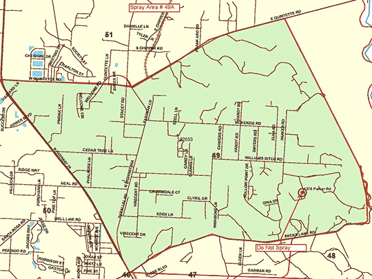 To make a request for service or an area to be listed as a no spray area, please call 850-937-2188, submit an online request here or send an email to mosquitocontrol@myescambia.com.
