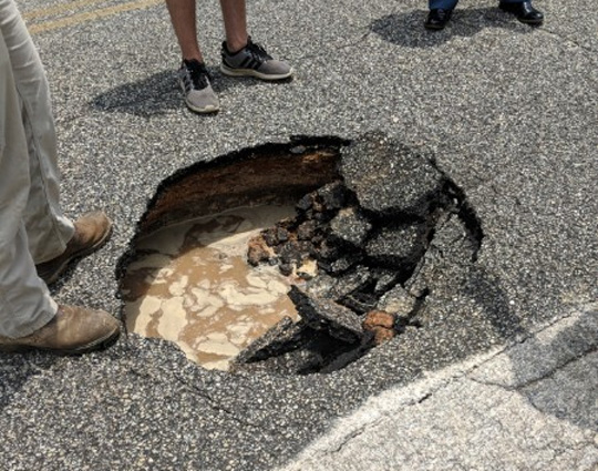 Old Fannie Road between Welka Road and the railroad tracks is closed due to the hole and possible additional damage under the road surface.