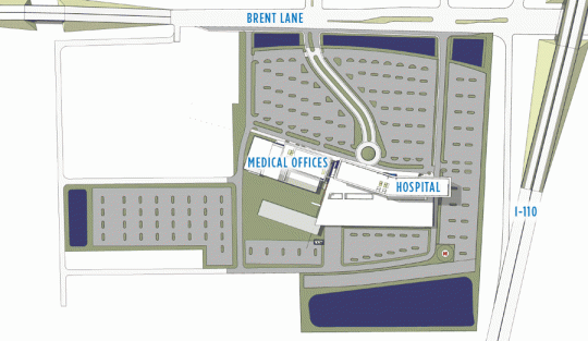 Baptist Hospital announced Wednesday morning that they will construct a brand new modern hospital campus at southwest corner of I-110 and Brent Lane. The main hospital will move from E Street to the new 650,000 square foot, $550 million facility. Administration, Lakeview and other services will remain at the current E Street campus.