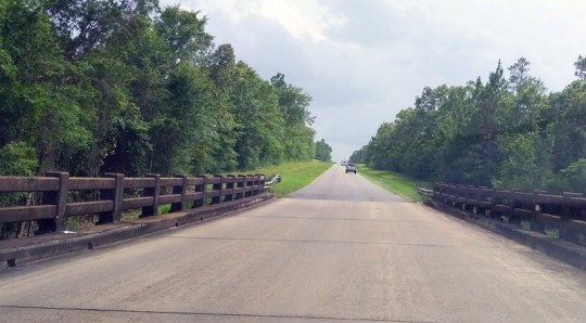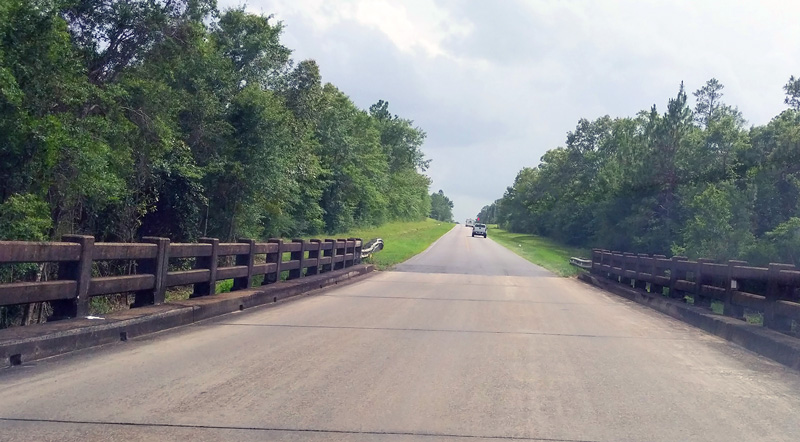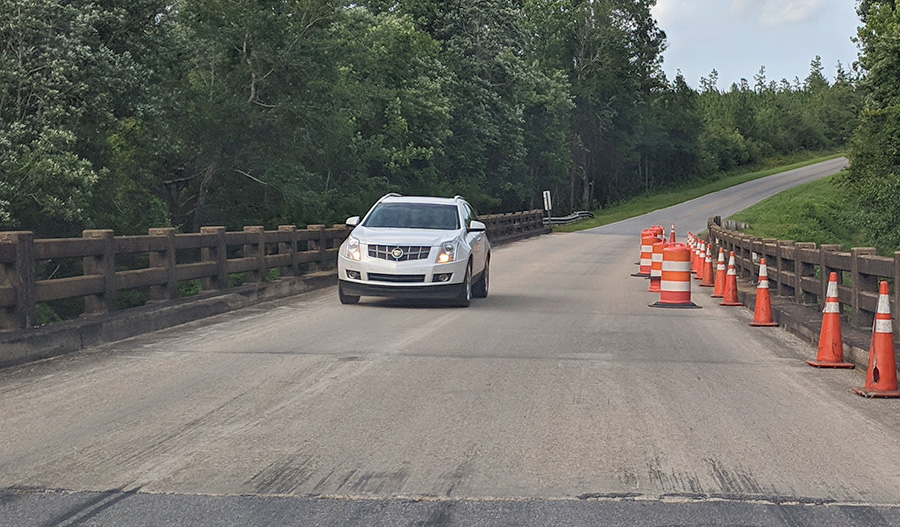 Pictured top: The Highway 4 bridge over Canoe Creek Monday afternoon. Pictured below: On Friday after, the bridge had been reduced to one lane. NorthEscambia.com photos, click to enlarge.