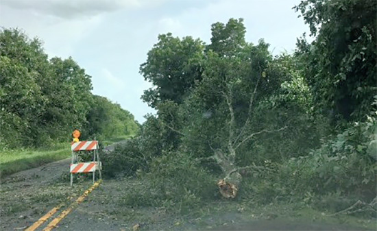 Pictured above: A tree down across the 900 block of Molino Road. Pictured below: A tree down on Schaag Road. Photos for NorthEscambia.com, click to enlarge.
