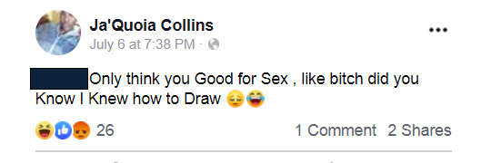 Investigators found Collins had made a post to her Facebook account at 11:19 p.m. that stated, “Ladies, NEVERRRR let a Boy put his hands on You cs a Real MAN ain’t Going for it.” That post was later deleted.