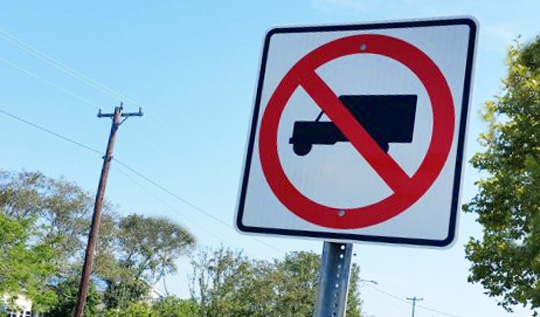 The truck ban does not include trucks servicing or having business within the area.