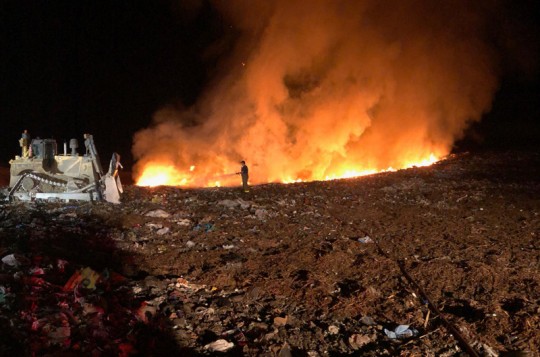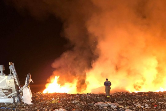 The call came in at 12:13 a.m., and firefighters arrived at 12:27 a.m. They were able to use equipment already on site and the landfill to put out the fire, Escambia County spokesperson Hana Frenette said.