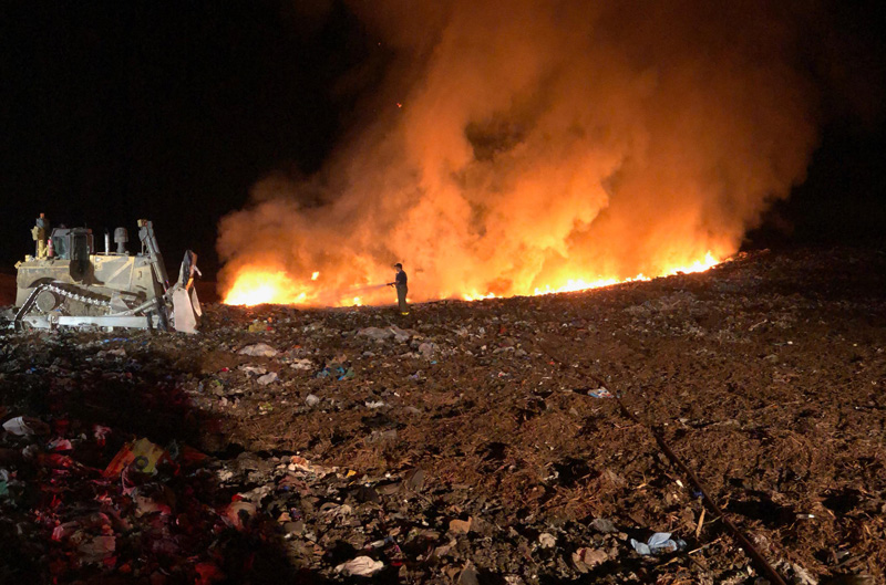 Firefighters battled a trash fire at the Perdido Landfill on Beulah Road early Tuesday morning.