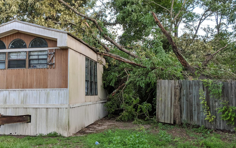 Sunday evening, a tree fell across a mobile home and power lines were downed on Pecan Grove Lane, according to Flomaton Fire Chief Steve Stanton. There were no injuries reported.