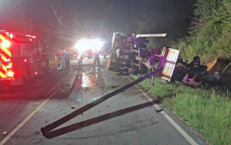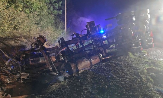 The driver reportedly suffered on minor injuries, but the truck was completely destroyed.