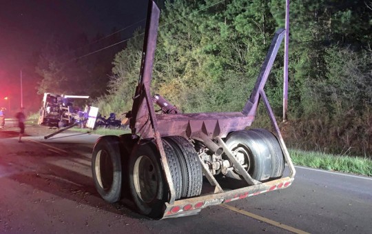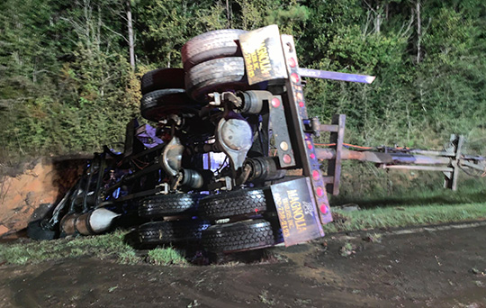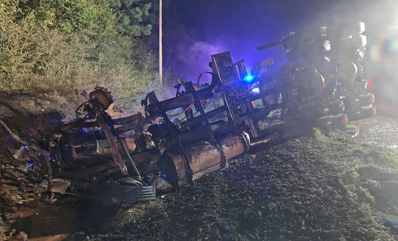 An 18-wheel log truck crashed and burned Monday night near the Alabama-Florida state line.