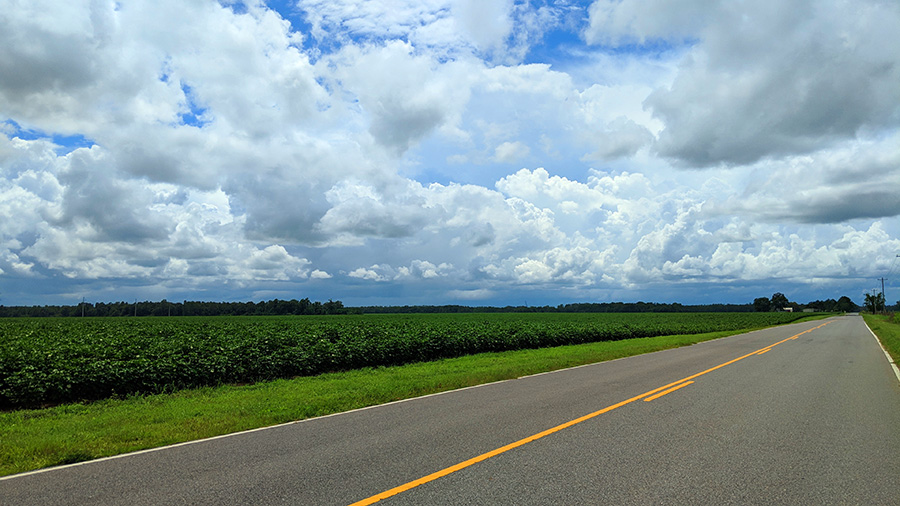 Pictured: Clouds build ahead of afternoon thunderstorms Tuesday in North Escambia. NorthEscambia photo, click to enlarge.
