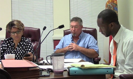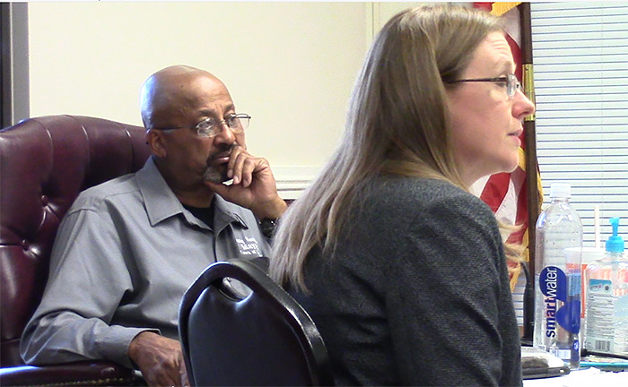 Pictured top: Century council members Sandra McMurray Jackson, Ben Boutwell and James Smith review audit findings Tuesday afternoon. Pictured below: Mayor Henry Hawkins listens as auditor Kristen McAllister presents her findings. NorthEscambia.com photos, click to enlarge.