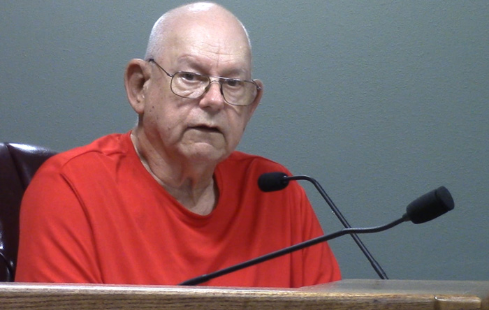 Pictured top: Flomaton Mayor Dewey Bondurant relates a personal story about alcohol during a special meeting of the Flomaton Town Council Monday afternoon. Pictured inset: Council member Lillian Dean. Pictured below: Council member Buster Crapps. Pictures bottom: The Flomaton Town Council votes on a Sunday alcohol sales ordinance. NorthEscambia.com photos, click to enlarge.
