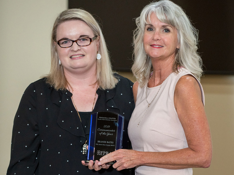 Santa Rosa County Public Information Officer Brandi Bates (pictured bottom right) was awarded Communicator of the Year. This award is given to a public relations professional, whether a member of FPRA or not, who demonstrates outstanding skills in any of the following categories: communicator for a non-profit/government organization, communicator for a for-profit organization or crisis communicator.