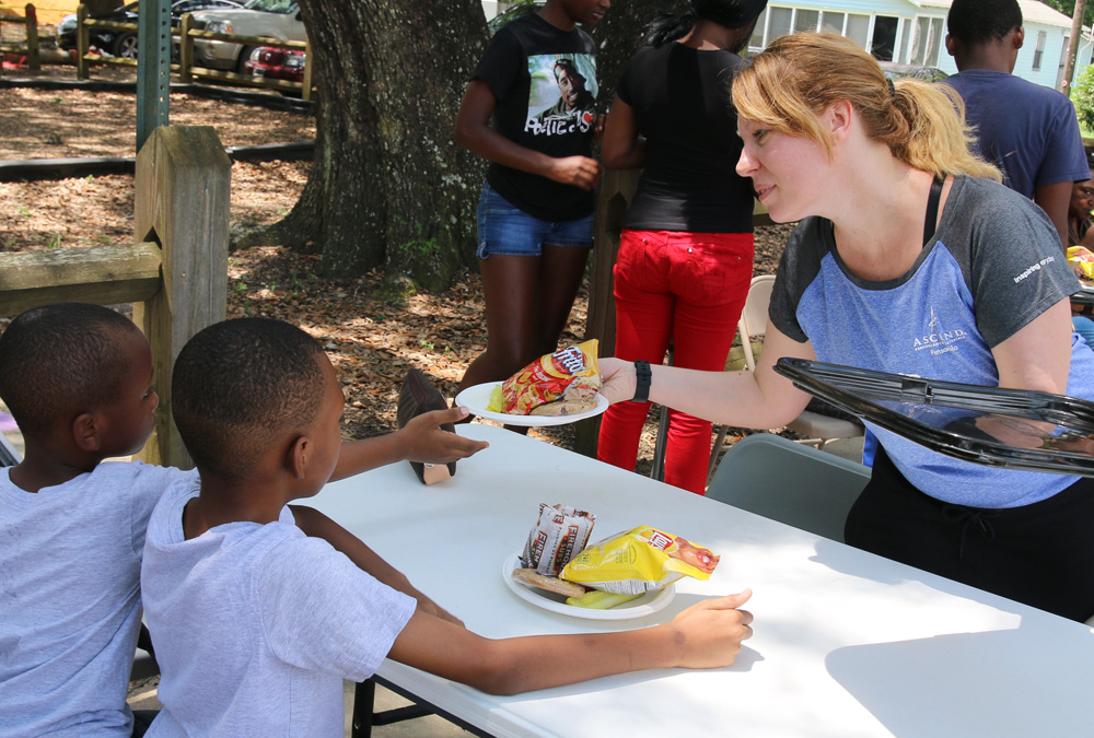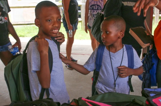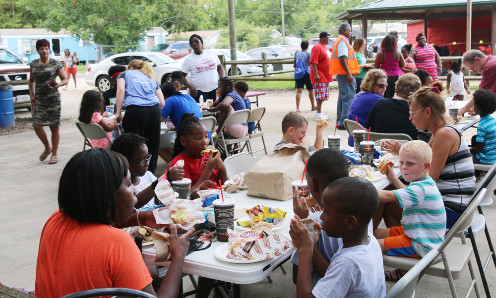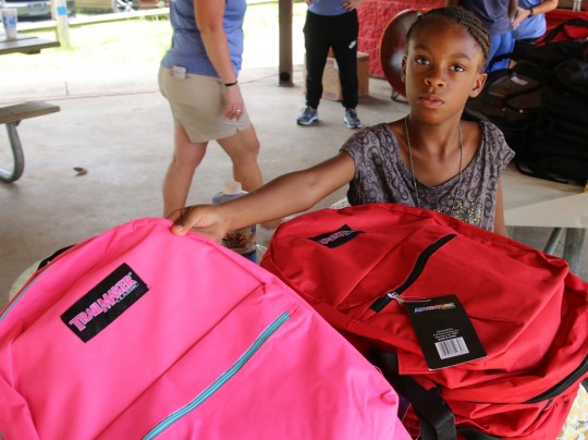 The group distributed backpacks and schools supplies and provided a free lunch at Carver Park in Cantonment.