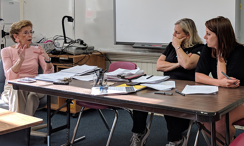 Pictured: Byrneville Elementary School Principal Dee Wolfe-Sullivan explains rising costs to board of directors members Melanie Killam and Brandy Carter Wednesday afternoon. NorthEscambia.com photo, click to enlarge.