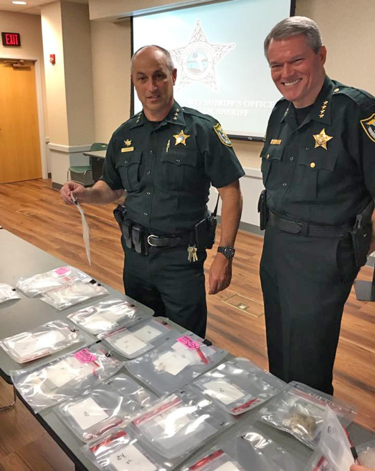 Inside his home, deputies confiscated 14 guns including AR-15’s, pistols and other firearms; meth, fentanyl, heroin, oxycontin, marijuana and other narcotics.