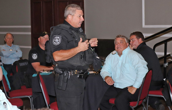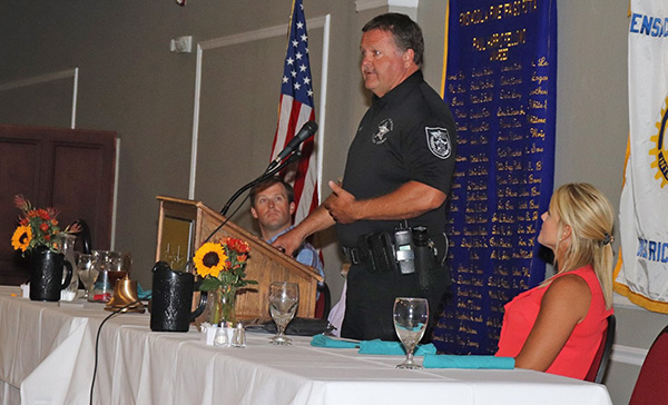 Deputy B. Baker and K-9 Triton, and Deputy T. Bortner and K-9 Zeek attended their weekly luncheon on Monday. Master Deputy Gulsby thanked Five Flags for the donation and had Deputy Baker showed off the hydration packs and discussed how they will help K-9s and officers in the field.