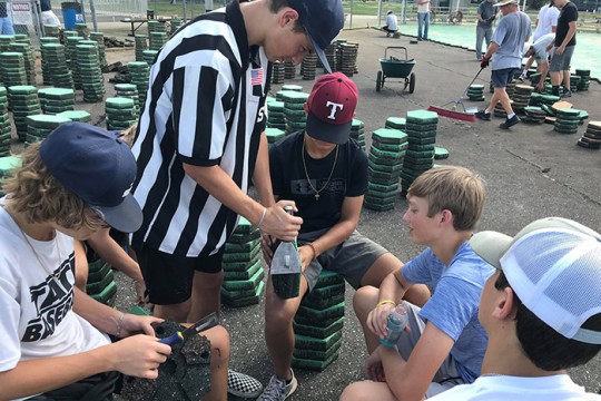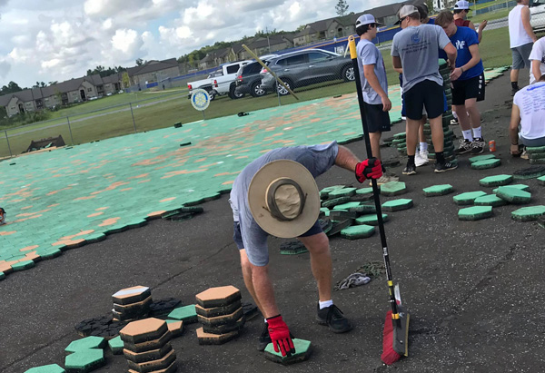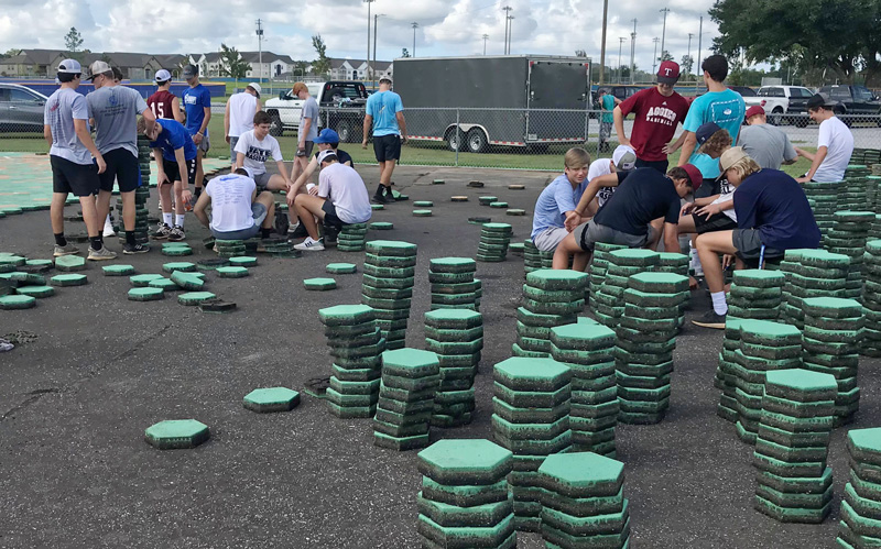 Pictured: Scores of volunteers have helped with repairs for the Miracle League, including these Tate High School baseball players. Photos for NorthEscambia.com, click to enlarge.
