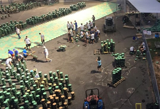 The field is covered with hundreds of tiles to create a safe playing surface. All of the tiles must be removed, pressure washed and replace. This will require a “massive” number of volunteers and hours of service, according to league officials.