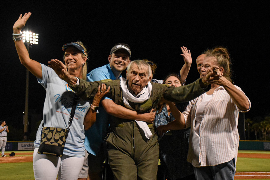 After the plane returned to Pensacola Aviation, Lane and his group traveled to Blue Wahoos Stadium. Covenant Care staff were there waiting to congratulate the World War II veteran.
