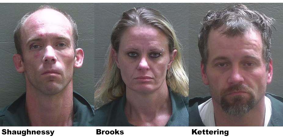 Martin Joseph Shaughnessy, 35; Dawn Cheree Brooks, 39; and Charles Kettering, 42, were each charged with 15 counts of felony grand theft of a firearm and one count of burglary. In addition, Shaughnessy was charged with felony resisting an officer with violence, misdemeanor resisting an officer without violence and violation of probation, and Brooks was charged with grand theft of a motor vehicle.