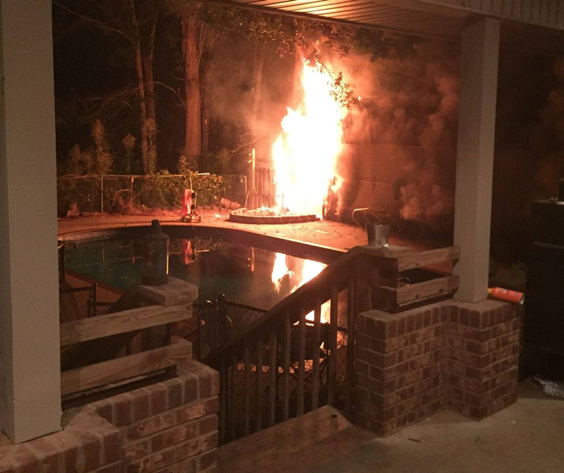There’s no official word on the cause of the fire, but a pool pump was suspected. There were no injuries reported.