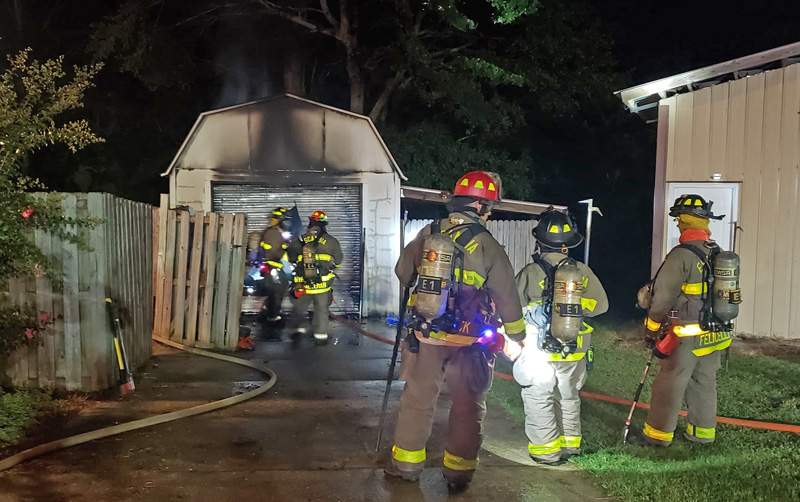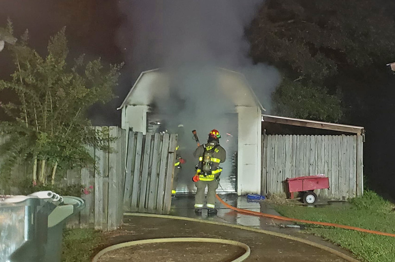 The fire in the 300 block of Daylily Road off Highway 95A was reported about 12:40 a.m. Firefighters were able to contain the blaze to the shed and keep it from spreading to other nearby structures.