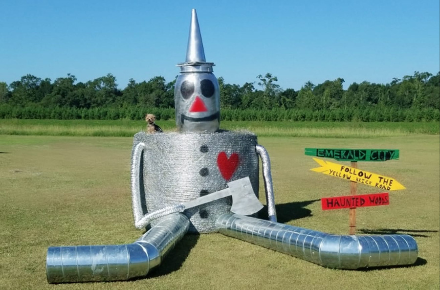 The Tin Man is in the 4800 block of Highway 196, just west of Barrineau Park School Road. And if you look closely at the photos, you’ll see the family dog Buzzy making a special appearance as Toto.