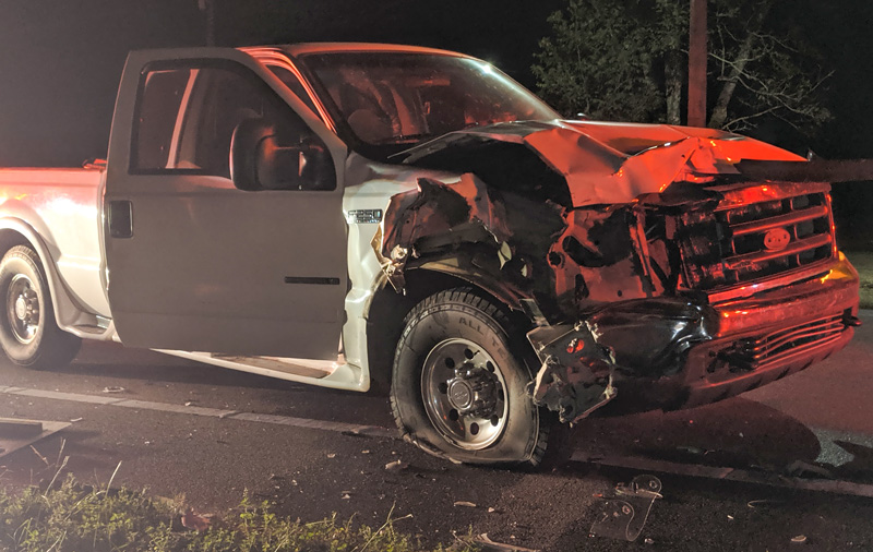 In the second crash, a motorcycle and a pickup truck collided on Highway 97 at Pine Forest Road about 8:20 p.m. (pictured below). The motorcyclist was airlifted to a Pensacola Hospital in serious condition. The driver of the pickup was not injured.