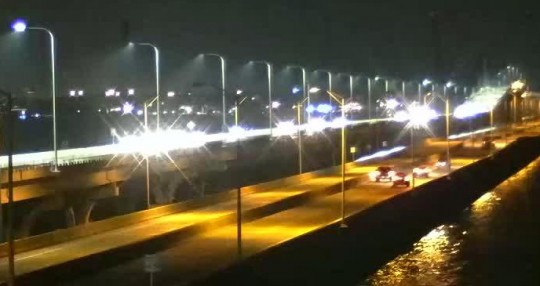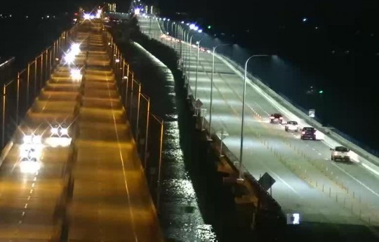 Pictured: Eastbound Highway 98 traffic was shifted to the new Pensacola Bay Bridge span Wednesday night.