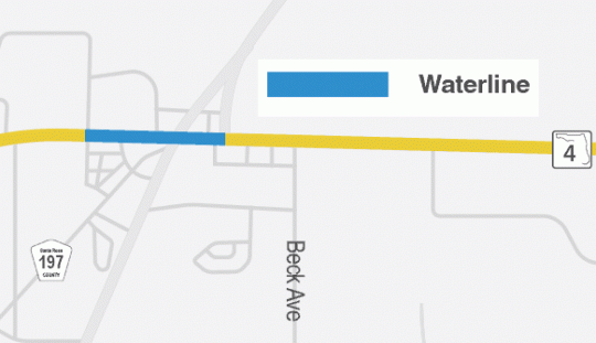 The project will span from the Escambia River Bridge to Market Road (Highway 87A) about 3.5 miles east of Jay. The project will include milling and resurfacing the roadway, pedestrian safety improvements along sidewalk facilities, guardrail upgrades at the Escambia River bridge, expansion joint replacement on the West Coldwater Creek bridge, and the replacement of the waterline from east of State Street to Magnolia Street in Jay.