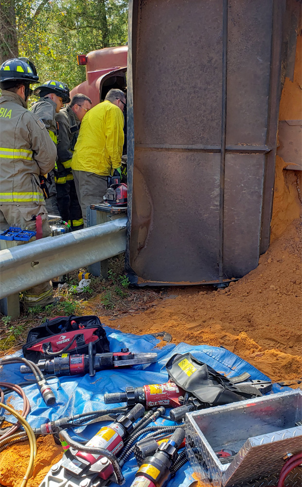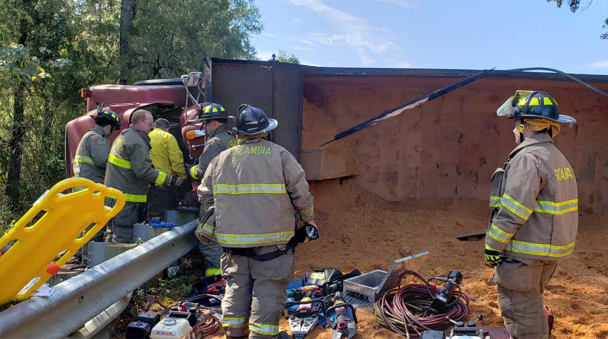 First responders from both states, including a special operations team from Escambia County, worked feverishly to remove the driver during an extensive extrication process.