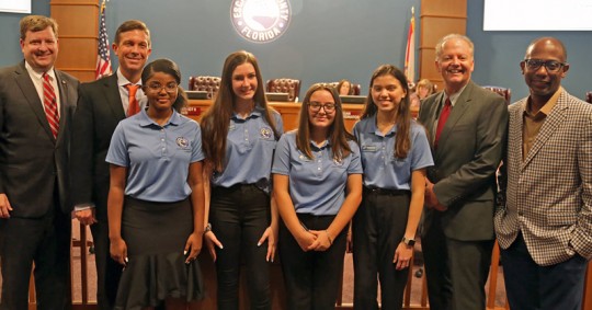 Pictured above: Escambia County Youth Commissioners (L-R) Trinity Kyles, Amelia Myers, Mallory Bell and Maggie Brown with Escambia Commissioners Robert Bender, Steven Barry, Jeff Bergosh and Lumon May. Photos for NorthEscambia.com, click to enlarge.