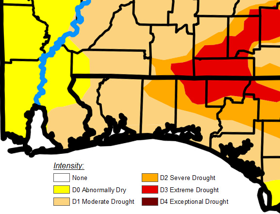A moderate drought exists across much of the North Escambia area, according to the latest information released Thursday by the U.S. Drought Monitor.