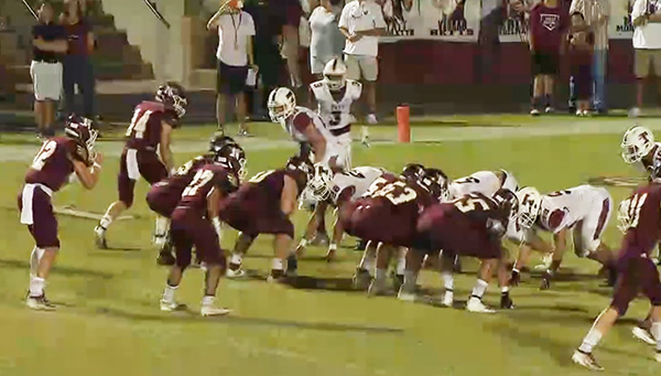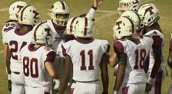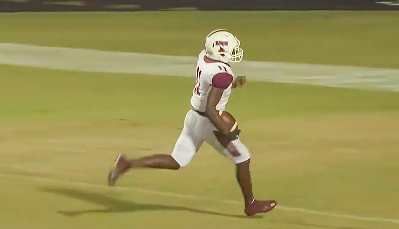 But the Aggies tied it up on a big defensive play when Tate’s Darion McShan stripped the ball from Niceville to return it 70-yards for a touchdown (pictured top). With the extra point through the uprights by Matt Johnson, it was a 7-7 ballgame.