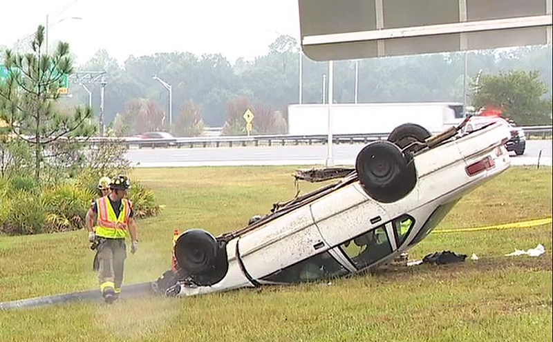 Katherine Susanne Lee, 35, was traveling east on an I-10 exit ramp to I-110 when she failed to negotiate a curve and lost control of her 1996 Chevrolet Caprice at 12:21 p.m., according to the Florida Highway Patrol. The vehicle began to rotate, left the roadway and struck a traffic sign. The vehicle came to rest on its roof on the grassy shoulder.