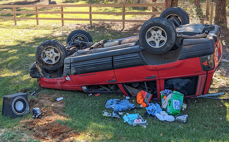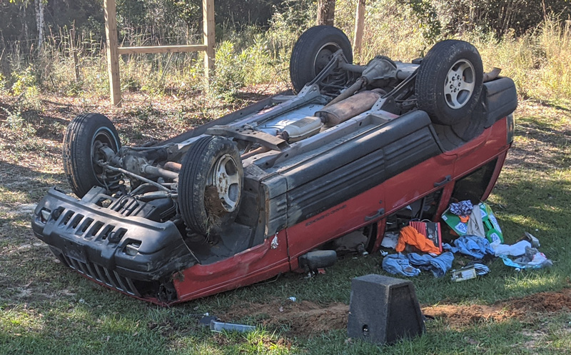A southbound driver lost control and left the roadway with the Jeep Grand Cherokee coming to rest on its roof in a ditch. The crash happened on South Highway 99 about a mile south of Highway 97A.