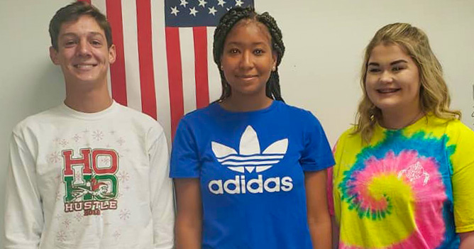 Winners of Northview High School’s Veterans of Foreign Wars essay contest were first place Jesse Hughes, second place Tereasia Burt and third place Lakyn Bodiford. Photo for NorthEscambia.com, click to enlarge.