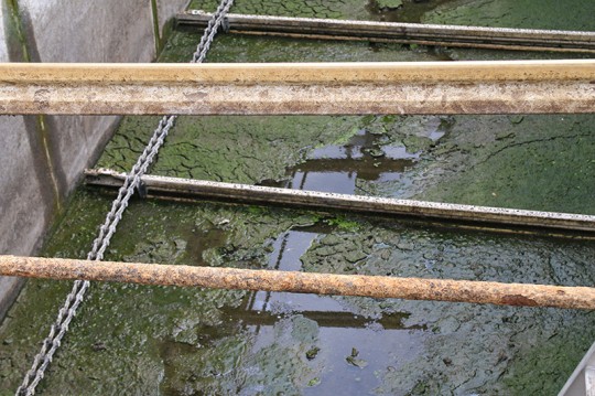 Pictured above: A nonworking clarifier in the Century Wastewater Treatment Facility. Pictured below: One of the other two functioning clarifiers at the facility. NorthEscambia.com photos, click to enlarge.