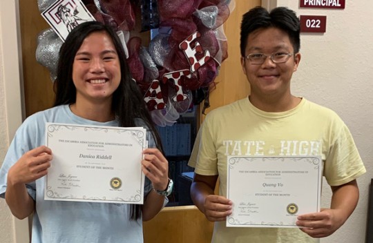 Tate High School has named Danica Riddell and Quang Vo as September Students of the Month. Photo for NorthEscambia.com, click to enlarge.