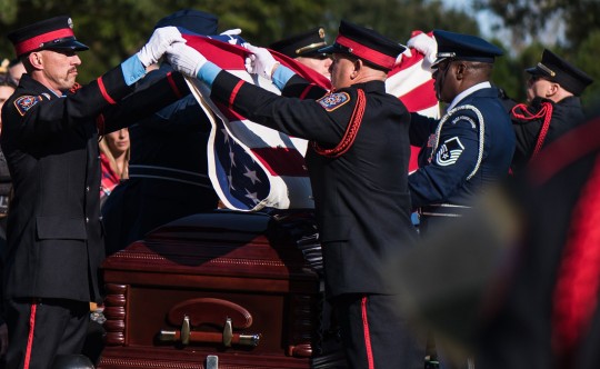 During the graveside service, Bradshaw was honored with a 21-gun salute and a flyover by LifeFlight.