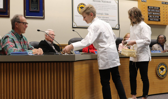 Students from the Ernest Ward Middle School Culinary Academy presented to the Escambia County School Board, and left them with a sweet treat, Thursday afternoon.