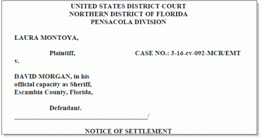 From the article, “A $100,000 settlement was reached in the case by the Florida Sheriff’s Risk Management Fund (“FSRMF”)”