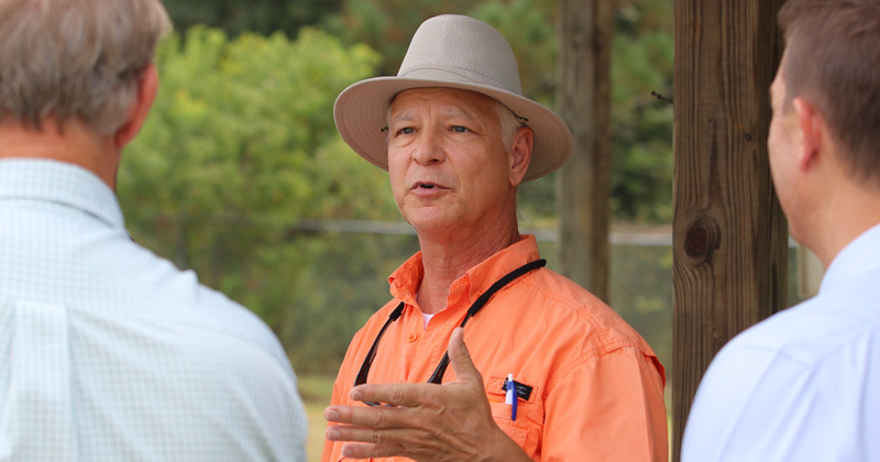 Picture above: Vernon Prather addresses a meeting of state and local officials at the Century Wastewater Treatment Facility on September 25. NorthEscambia.com photo, click to enlarge.